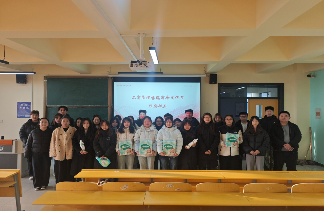 为进一步丰富校园文化生活,营造整洁有序、温馨和谐的宿舍氛围,培育学生团结协作精神与集体荣誉感。近日,工商管理学院在2号教学楼举行宿舍文化节颁奖仪式。学院分团委书记褚琼玮、宿舍专干王月老师、全体辅导员及获奖宿舍代表、学生代表参加仪式。